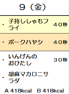 ※メニューの中の秒数は、電子レンジでのおよその加熱時間です。